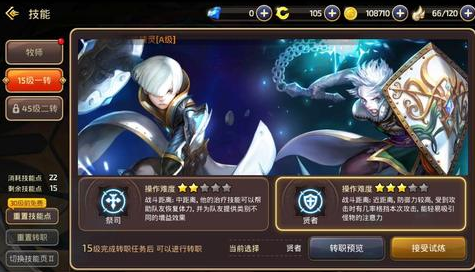 在龙之谷手游中,玩家等级达到15级完成转职任务便可进行一转,每个职业转职时都有两个分支选择,到达45级时完成转职任务可进行二转,二转同样是有两个分支选择。