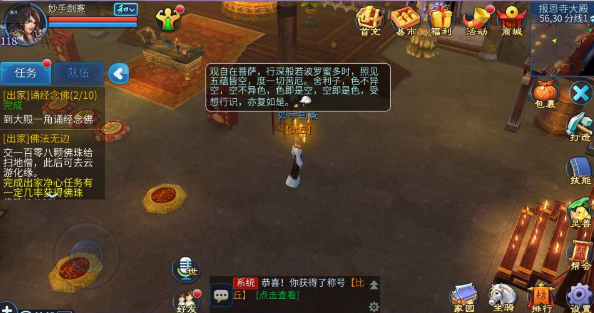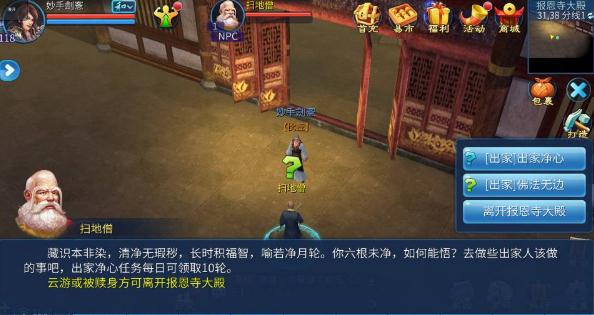 任务领取方法:在报恩寺大殿找到扫地僧领取佛法无边任务