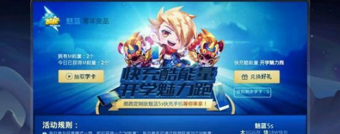 玩家在快充酷能量开学魅力跑活动中集齐不同字符,可兑换各种好礼,除了实物奖励魅族手机和移动电源之外还可兑换金元年兽坐骑等奖励。