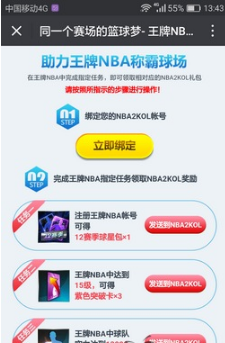 接着在活动界面中绑定自己的NBA2KOL帐号,进入王牌NBA中完成指定的任务。