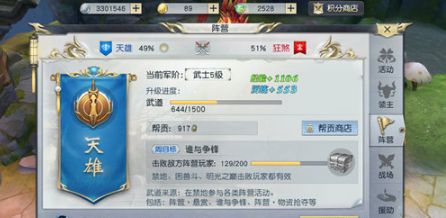 可以说,战功是累积速度相对快,算上任务奖励,满打满算,每天可以获得的战功在1K+,战功如此容易获得,但可兑换的东西都非常宝贵,比如奔牛,比如明光玉等,笔者强烈建议,忙碌的时候,我们可以不打神兵,可以不做师门,但必须做对战,哪怕是躺着挂过去,也必须做。当然,PVP匹配的阵容比较随机,对网络要求也相对较高,为了游戏的和谐以及个人的声誉,我强烈建议大家认真手动打。