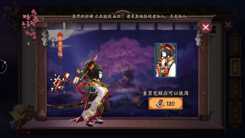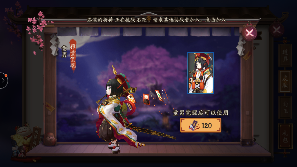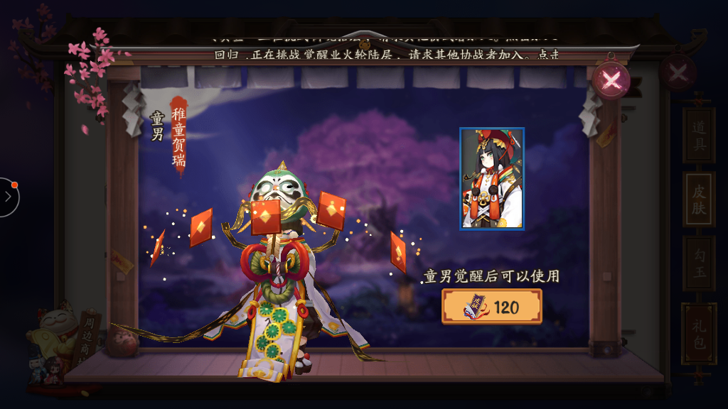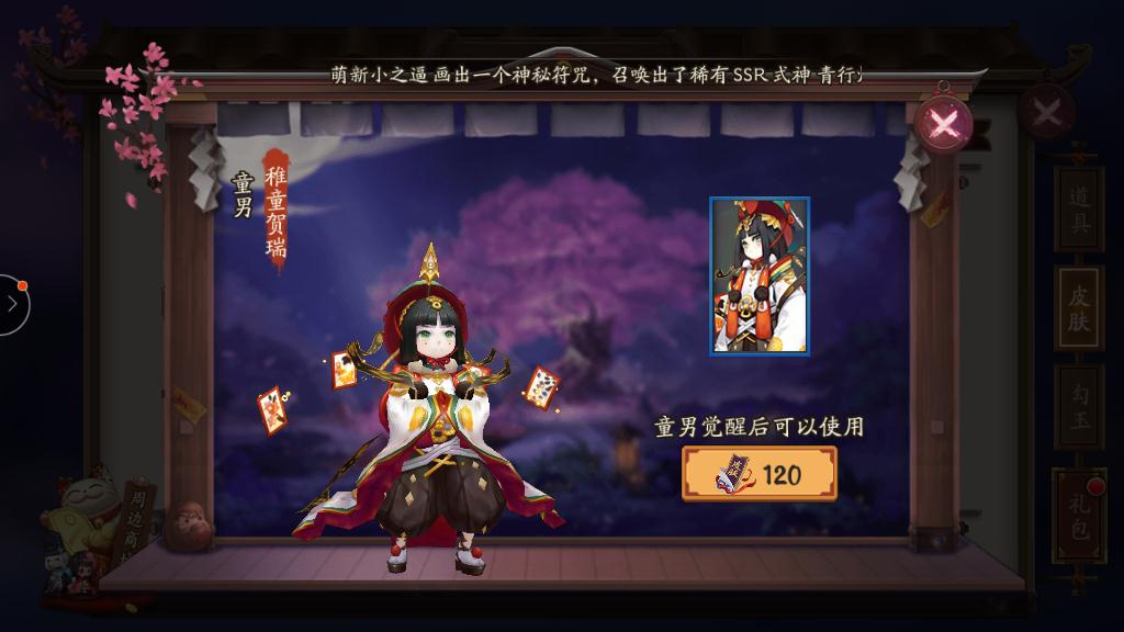 阴阳师童男新皮肤稚童贺瑞是女儿节活动款需要120皮肤券,喜欢的玩家可以直接在皮肤商店购买