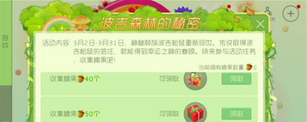 收集榛果40个,可领取【森林部族的礼物(大)】