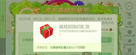 森林部族的礼物:打开之后可获得波吉(关键词皮肤碎片)*5