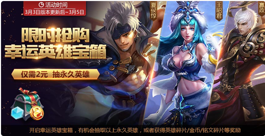 英雄抽奖宝箱限时上架,嬴政夏侯惇开出来!