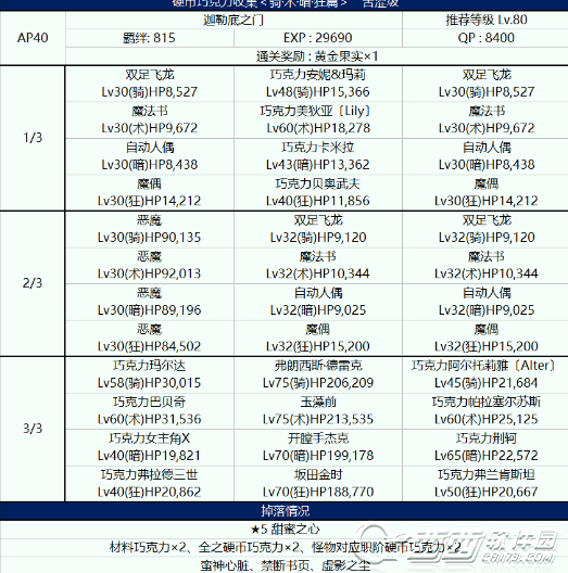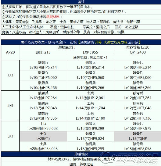 以上就是FGO国服情人节free本敌人配置一览,情人节巧克力free本材料掉落一览,请大家继续关注。