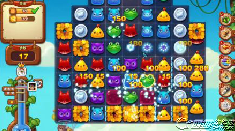 本关卡中出现了新的障碍物,消除木桩然后还能变化出金色的花朵,这两个元素都是关卡中的障碍物与消除目标。尤其是金花,需要消除多次才可以,下面我们来看看过关展示吧。