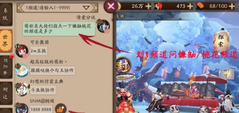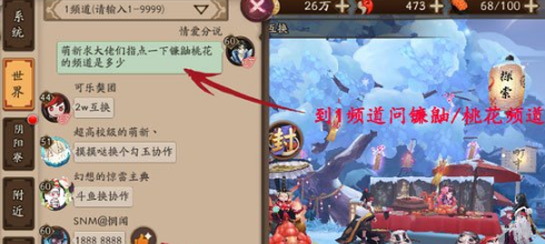 每个服务器都有玩家统一组织的镰鼬/桃花频道,可以方便大家一起刷碎片。1频道是各种交易混迹的地方,最热闹的频道,这里混杂着各种大佬,不知道自己服务器镰鼬/桃花频道所在的小伙伴们可以在这里问一下大佬们,一般都是会有热心的大佬告诉你的