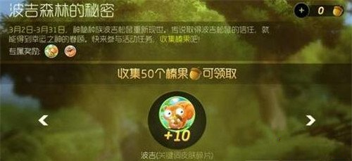 收集10个榛果,可领取5个波吉(关键词皮肤碎片)