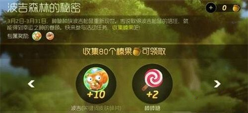 收集80个榛果,可领取10个波吉(关键词皮肤碎片),2个棒棒糖