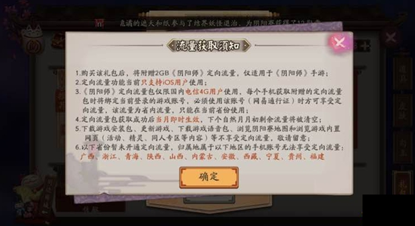 以上就是阴阳师2g定向流量哪些地区可以使用,2g定向流量使用地区一览,请大家继续关注。
