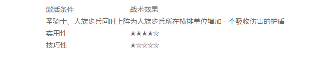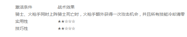 战术介绍:这个战术释放的条件比较苛刻,一般状态下对方会优先选择击杀对后排单位威胁较大的火枪手,但是在对方远程攻击单位不足的情况下,这个战术可以进一步增加火枪手的输出。