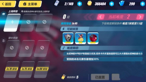四个难度共有的难度条件为女武神无法依靠自身恢复SP和HP,然后2难度会增加一个随机限制,3难度两个,4难度三个。