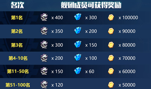 每周排名前100的舰团内的所有成员都可以获得活动奖励。