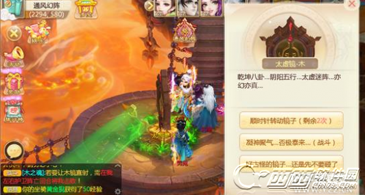 4) 进入通风幻阵后,各位大侠需要战胜太虚镜中的神灵,并通过转动镜子,利用镜中发射出的光线,将五座主岛连接起来,让猕猴王现身;