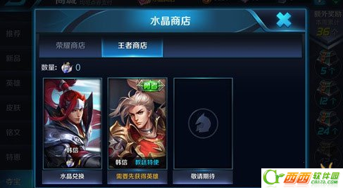 王者水晶用法:玩家获得王者水晶之后,可以在【商城】-【夺宝】-【水晶商店】里面进行兑换,1个王者水晶可以兑换韩信或是韩信皮肤教廷特使。