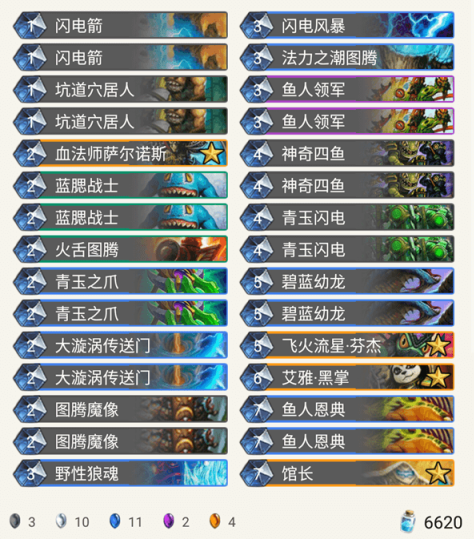 基于蹩脚和爪子的削弱,萨满有了卡位搭上鱼人的顺风车了。这套基于快攻萨113、234、477、狼