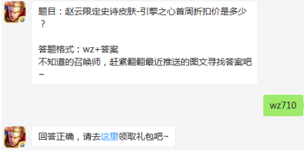 题目:赵云限定史诗皮肤-引擎之心首周折扣价是多少?