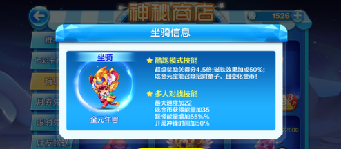 金元年兽的技能是超级奖励关得分4.5倍,磁铁效果加成50%,吃金元宝召唤招财童子,顶新年方块召唤春节吉祥物