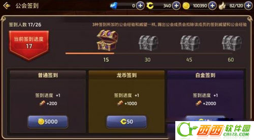 小伙伴们签到一定不要吝啬,一定要选择200龙币的那个,虽然很贵但是得到的贡献值绝对物超所值,签到达到一定数量后开启公会签到宝箱,最高可开出200龙币,真正的取之于民用之于民。而且升级头衔需要公会商店里的徽章。
