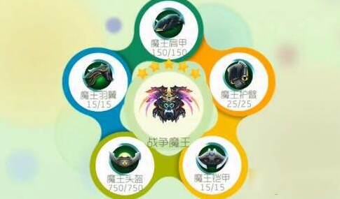 满级合成材料:魔王羽翼*15,魔王肩甲*150,魔王护臂*25,魔王头盔*750,魔王铠甲*15