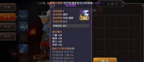 星座三件套每件都是加23点属性的,所以三件套总共是各属性加69点。同时还有套装属性加成,能力不俗,主要是比较炫酷。主要的战斗力还是要靠装备强化以及养成。