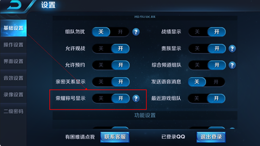打开设置-基础设置-荣耀称号显示,进行设置即可。
