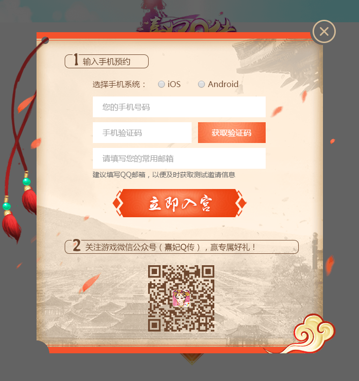 输入相应的条件,地址,手机号等,就有机会预约成功。获得熹妃Q传手游激活码哦!