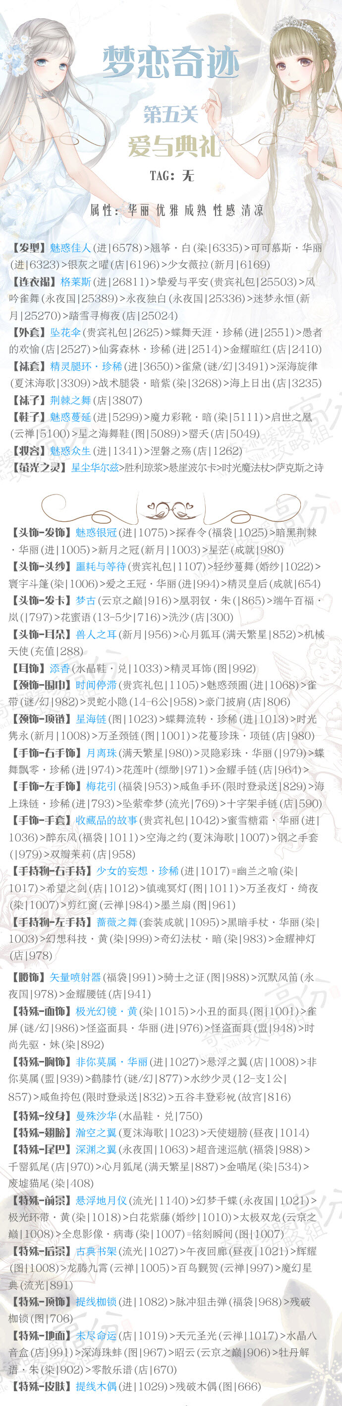 奇迹暖暖梦恋奇迹第五关爱与典礼高分搭配推荐