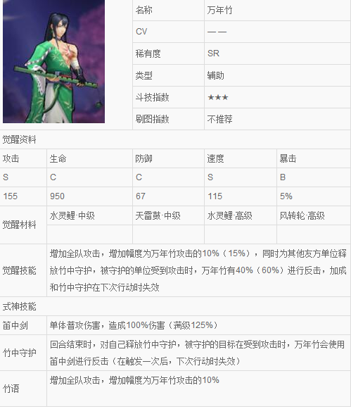 阴阳师万年竹属性技能声优详情介绍