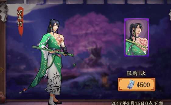 阴阳师万年竹技能是什么,sr式神万年竹技能属性一览,阴阳师万年竹是上线神龛商店的sr式神,需要玩家4500御札开启兑换,作为新的sr式神,很多玩家都很关心阴阳师万年竹技能是什么,万年竹技能分别是笛中剑,竹叶守护和竹语,下面带来阴阳师万年竹技能属性一览。