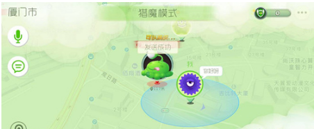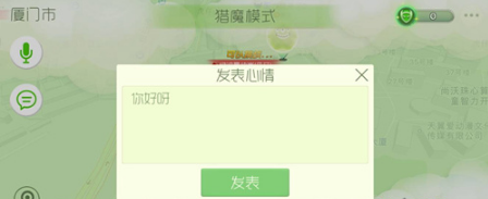 1、进入猎魔模式后,点击左边的聊天气泡按钮,就可以输入心情了。