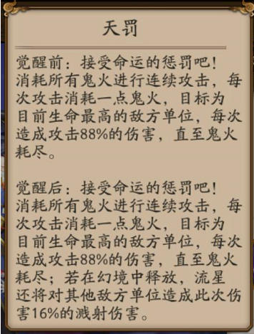 消耗所有鬼火进行连续攻击,每次攻击消耗一点鬼火,目标为目前生命值最高的敌方单位,每次造成88%的伤害,直至鬼火耗尽。