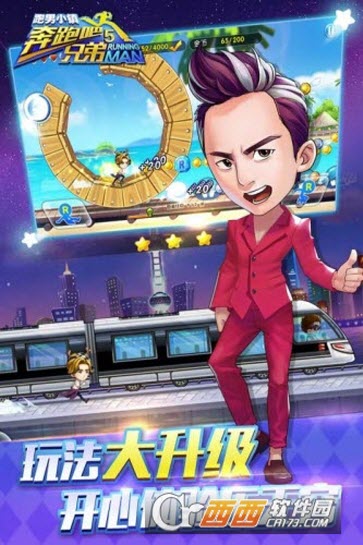 《奔跑吧兄弟5-跑男小镇》在横版跑酷游戏的基础玩法上,融入了综艺节目的撕名牌环节,令游戏乐趣倍增。 新增水枪射击玩法大战铃铛黑衣人,列车竞速赛体验速度与激情!动感的背景音乐、华丽的游戏界面、得心应手的跑酷游戏体验,可让玩家在精妙的设计中越玩越爽快!