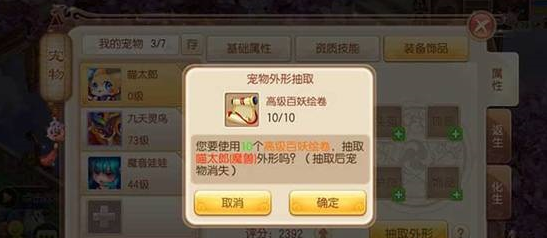 这里需要记住,抽取外形的宠物千万不要对成品的宠物进行抽取,否则宠物会消失。