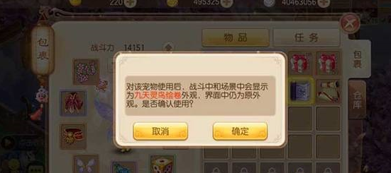 3、使用绘卷,可以对拥有的其他宠物使用,改变其宠物的外形(不能对参战宠物使用,不能对同类宠物使用)。