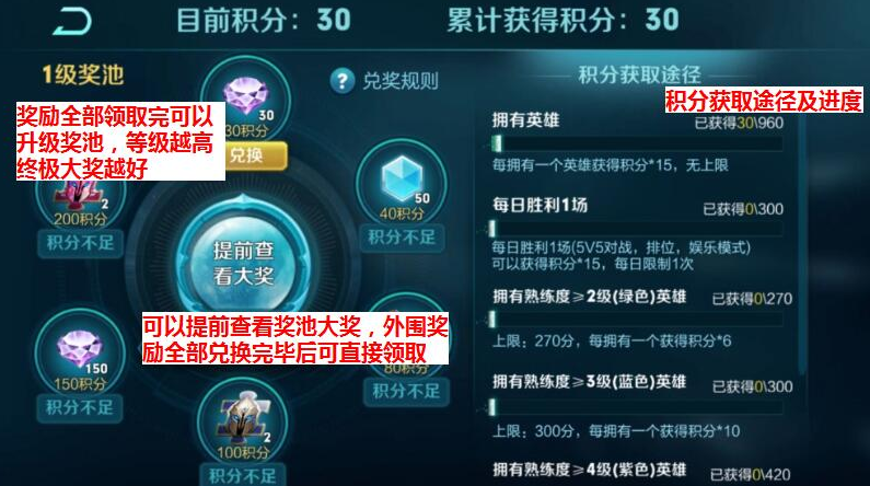 1. 使用积分可以兑换奖池外围中的6个奖励
