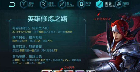 点击上方的职业按钮可以切换不同职业,点击下方的英雄按钮可以查看该职业中已拥有英雄的历史记录哦。