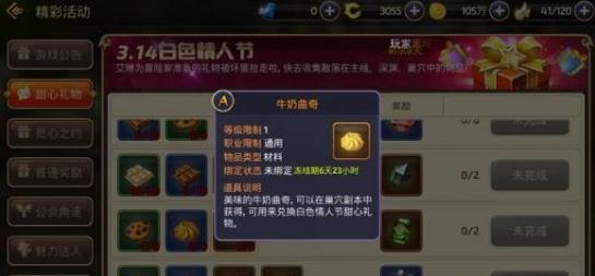 牛奶味十足的巧克力,可以在主线副本中获得,可用来兑换白色情人节甜心礼物。