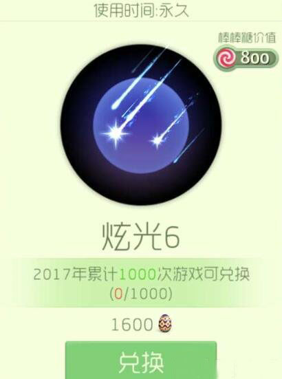 获取途径:2017年累积1000次游戏可兑换,用1600个蛋蛋可兑换