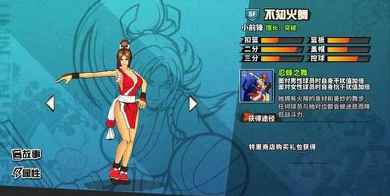 街头篮球手游中不知火舞是SF小前锋,不知火舞的控球能力最强。街头篮球手游不知火舞属性和技能怎么样呢?西西小编分享下街头篮球手游不知火舞属性以及不知火舞技能,供参考,有的人觉得不知火舞不怎么样,有的玩家还是很期待不知火舞的,那么究竟不知火舞的技能怎么样呢,西西小编这就为大家介绍。