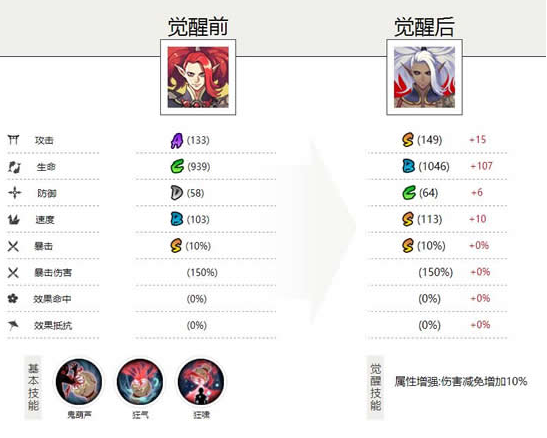 1技能(主动):鬼葫芦,普通攻击,0火,造成100%/105%/110%/115%/125%的伤害,每多一层狂气可多攻击一次,最多攻击5次。