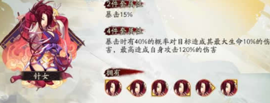 攻击、暴击、爆伤:由于酒吞童子5段攻击的特性,除了针女套之外,其他都可以高爆伤、40左右暴击,攻击方面,当攻击加成超过100%时,暴击爆伤的收益就开始高于攻击,但攻击过低时,收益是高于双暴的。