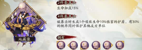 点评:能肉能打是地藏酒的特色,地藏不仅是对生存的提高,更是对队伍整体硬度的提升,同时对于魅妖、日女巳时、魍魉之匣可能有奇效。