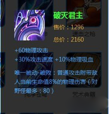唯一被动:普通攻击附带敌人当前生命值8%的物理伤害(对野怪最多:80)