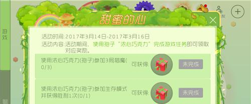 活动内容:活动期间,使用孢子“浓心巧克力”完成游戏任务,即可领取对应奖励。