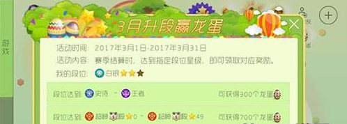 段位达到:超神1段0星~超神1段49星,可获得700个龙蛋