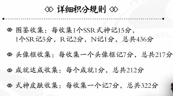 每收集一个SSR 式神计分15分