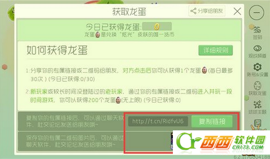 第三步:在【获取龙蛋】界面,介绍了龙蛋的链接或二维码分享的规则,在最下方就是龙蛋的专属链接和专属二维码,主要点击复制,即可完成链接的复制;