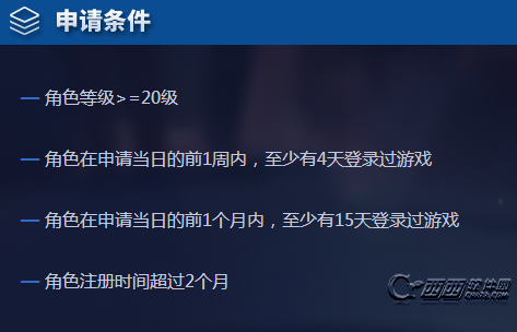 - 角色在申请当日的前1个月内,至少有15天登录过游戏